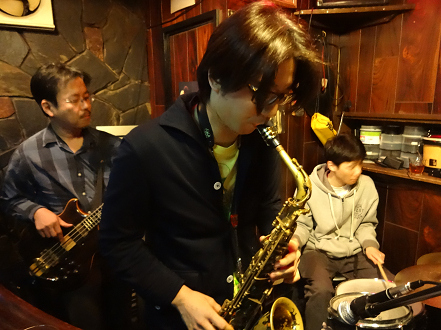 今日は エレベに持ち替えて ドラムも入って サックスも入って