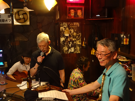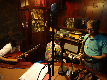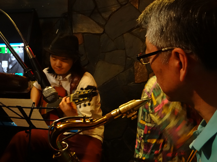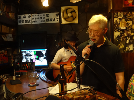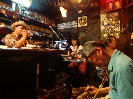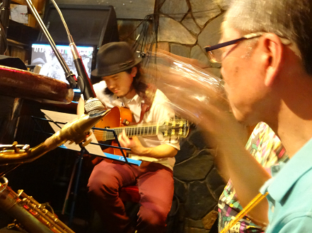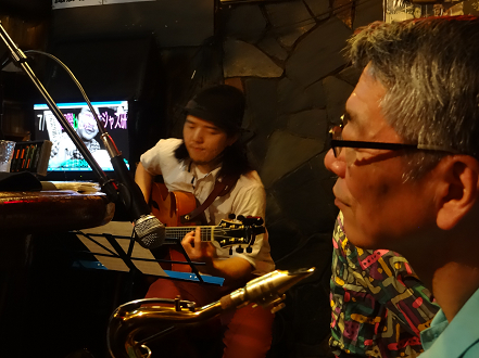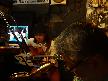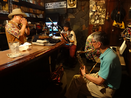 某g男君が つま弾く スローなブルースに 某店主の独断と偏見によるハーモニカが 絡み