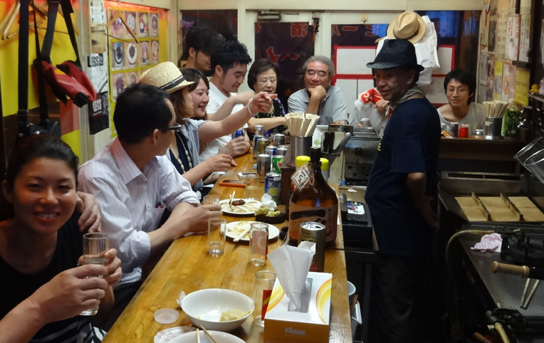 「大川社長 皿洗いばっかりしてないで お客さんの酒も作ってよ ほれほれ」