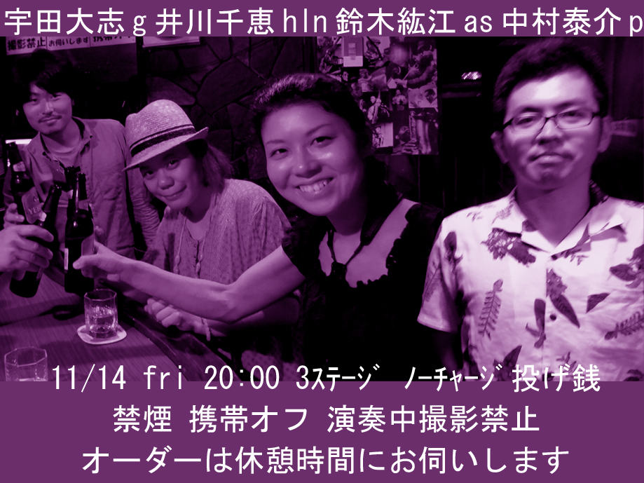 | 2014 11/20 | 山形衣里vo中村泰介p | 中村泰介p下梶谷雅人g宇田大志g塚田智ts |