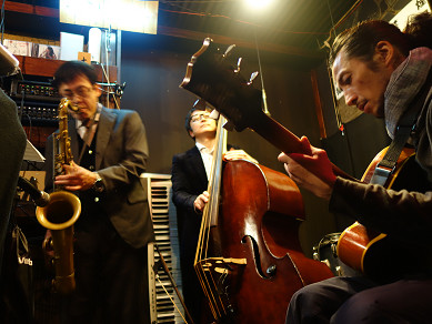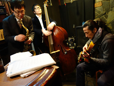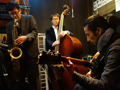 今宵は ギターとベースのデュオ + サックス = トリオ