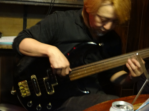 2種類のベースを弾き分けるタケシさん